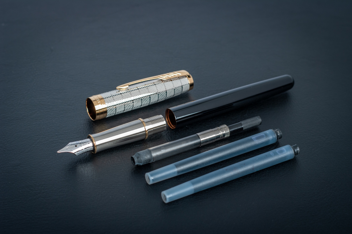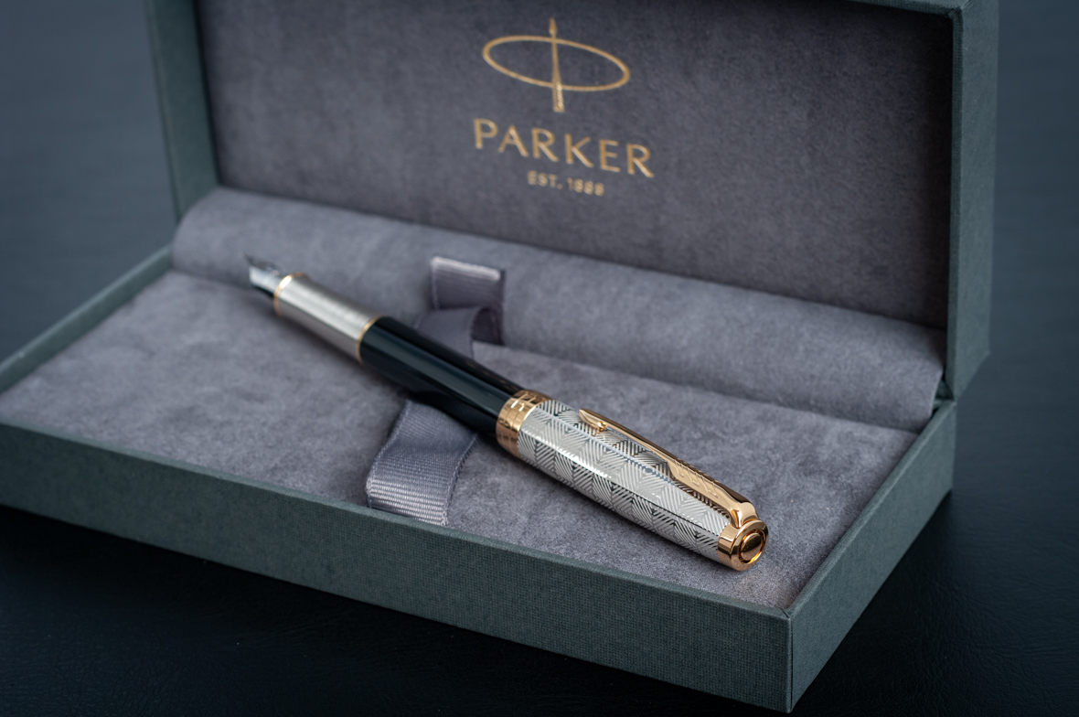 Ручка перьевая Parker Sonnet Premium Metal Black GT M от официального дилера Parker в Улан-Удэ. Вы можете дополнительно заказать гравировку, которая подчеркнет Вашу оригинальность и придаст памятность статусному подарку. Все ручки Паркер поставляются в фирменном футляре.